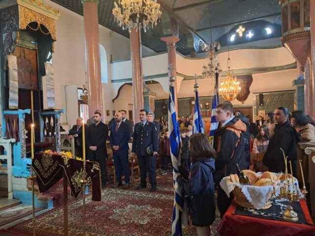 Το πρωί τελέστηκε Δοξολογία στον Ιερό Ναό Αγίου Γερμανού και επιμνημόσυνη δέηση στο μνημείο των Ηρώων, όπου κατατέθηκαν στεφάνια από τους εκπροσώπους των αρχών και τους μαθητές.