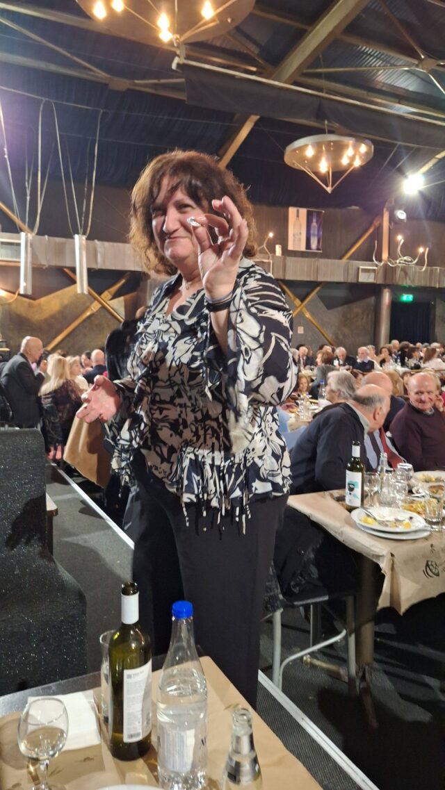 Το πρώτο φλουρί: Η μεγάλη τυχερή της εκδήλωσης ήταν η κ. Αναστασία Ζιάμου, η οποία κέρδισε ένα χρυσό κολιέ με σκουλαρίκια, μια ευγενική προσφορά του Σωματείου προς τα μέλη του.