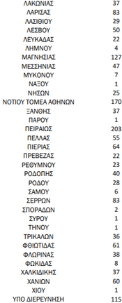 Η γεωγραφική κατανομή των κρουσμάτων έχει ως εξής: