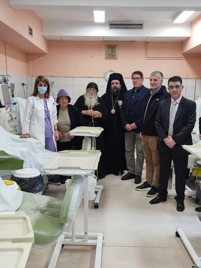Η σημερινή λοιπόν επίσκεψη, με την παρουσία του Σεβασμιότατου Μητροπολίτη κκ. Καλλίνικου, είχε ακριβώς αυτό τον σκοπό. Να βεβαιωθεί ότι είναι σε πλήρη αξιοποίηση και να συνομιλήσει με τους ασθενείς. Θέλω να επαινέσω ιδιαίτερα δύο ανθρώπους μας, την κ. Ρώμα Βασιλική, νεφρολόγο Διευθύντρια της Μονάδας Τεχνητού Νεφρού και τον κ. Κατηρτζίδη Κυριάκο προϊστάμενο Διοικητικών Υπηρεσιών που με προσωπική επιμέλεια και ταχύτητα διεκπεραίωσαν τα ιατροτεχνολογικά και οικονομικογραφειοκρατικά θέματα.