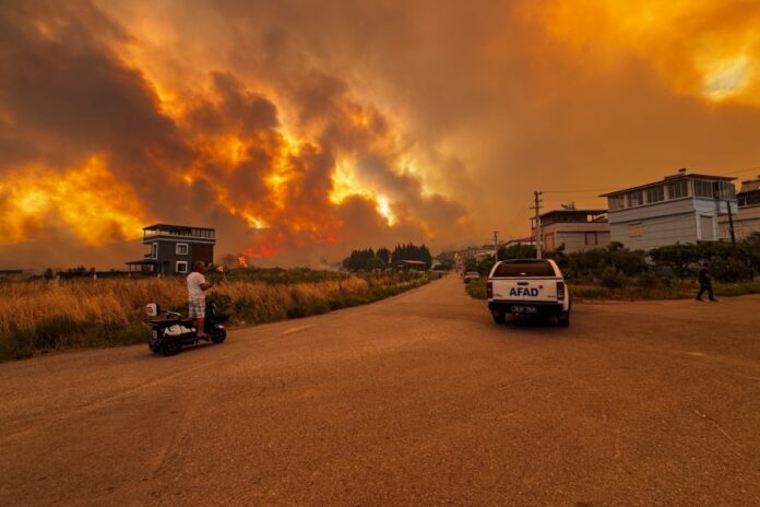 Η δασική πυρκαγιά, που ξέσπασε στα όρια των περιοχών Μεντερές και Σεφεριχισάρ, εξαπλώθηκε σε κατοικημένες περιοχές.