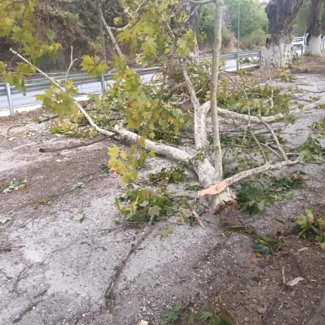 Στο σημείο έσπευσαν οι αρμόδιες αρχές για την απομάκρυνση των δέντρων και την αποκατάσταση της ομαλής κυκλοφορίας.