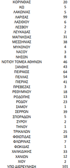 Η γεωγραφική κατανομή των κρουσμάτων έχει ως εξής: