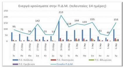 Η Περιφέρεια Δυτικής Μακεδονίας στα πλαίσια της ενημέρωσης για την εξέλιξη των κρουσμάτων κορωνοϊού, δίνει στη δημοσιότητα σχετικό πίνακα στον οποίο αποτυπώνεται ο αριθμός των ενεργών κρουσμάτων κατά Περιφερειακή Ενότητα