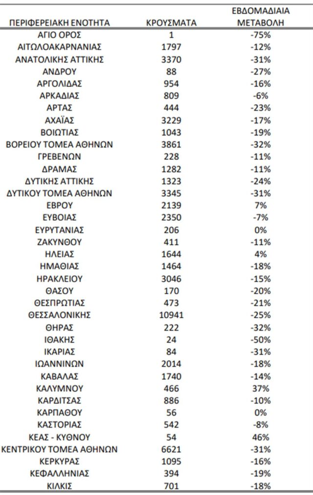 100.421 νέα κρούσματα ανακοινώθηκαν την τελευταία εβδομάδα στην Ελλάδα από τον ΕΟΔΥ