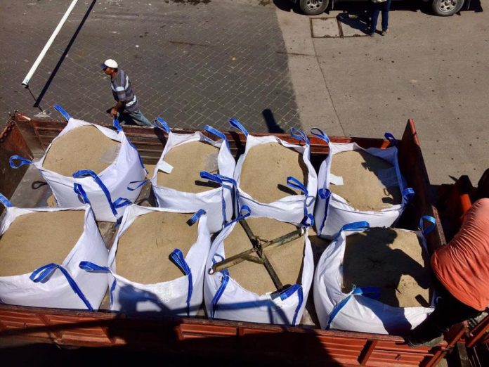 Άμμο κατευθείαν από παραλία της Χαλκιδικής, έφτασε στον υπαίθριο χώρο της ΔΕΘ, ώστε να στηθεί ένα beach bar.