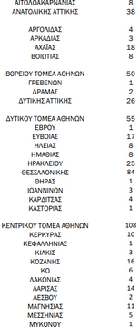 Η γεωγραφική κατανομή των κρουσμάτων έχει ως εξής: