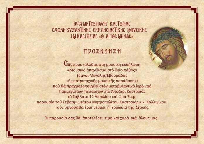 Μουσική εκδήλωση με τους Ύμνους της Μεγάλης Εβδομάδας στο Απόζαρι
