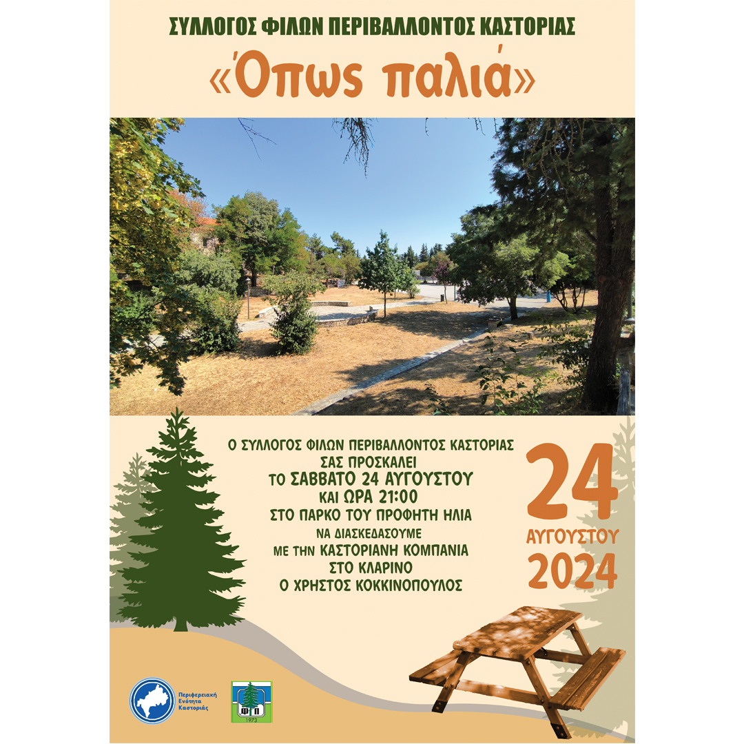 Σας προσκαλούμε στην καθιερωμένη εκδήλωσή μας, “Όπως παλιά” το Σάββατο 24-8-2024 και ώρα 21,00΄ στο άλσος του