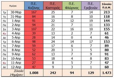 Ενεργά κρούσματα Π.Ε. ΚΑΣΤΟΡΙΑΣ Ενεργά κρούσματα Π.Ε. ΓΡΕΒΕΝΩΝ Ενεργά κρούσματα Π.Ε. ΚΟΖΑΝΗΣ Ενεργά κρούσματα Π.Ε. ΦΛΩΡΙΝΑΣ