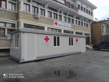 Πρόκειται για έναν οικίσκο τύπου isobox με στατική επάρκεια, διαστάσεων 3 μ. Χ 5 μ., μονόχωρο, με παροχή ρεύματος και νερού, κλιματιστικό, νιπτήρα και γενικά όλες τις απαραίτητες ηλεκτρολογικές και λοιπές εγκαταστάσεις, ώστε να είναι κατάλληλος, τόσο για τους εργαζόμενους όσο και για τους πολίτες, να χρησιμοποιηθεί ως σημείο δειγματοληψίας για test Covid.