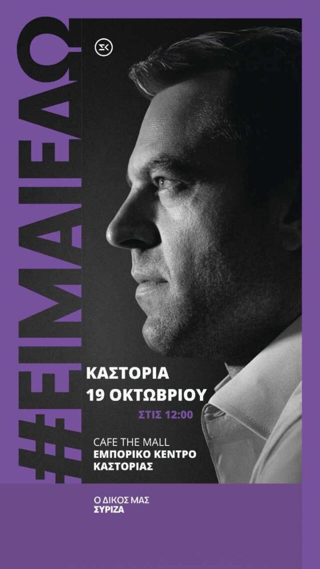 Η Νομαρχιακή Επιτροπή του ΣΥΡΙΖΑ-ΠΣ Καστοριάς σας καλεί σε συνάντηση με τον Στέφανο Κασσελάκη στο Εμπορικό Κέντρο το Σάββατο, 19 Οκτωβρίου, στις 12:00.