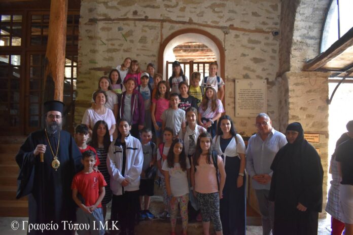 Πρώτος σταθμός της επίσκεψης του η Ιερά Μονή Παναγίας στην Κλεισούρα. Εκεί παρακολούθησαν την Θεία Λειτουργία, ιερουργούντος του Σεβ. Μητροπολίτου μας κ. Καλλινίκου, ο οποίος μίλησε σχετικά στα παιδιά, αναφερόμενος στην εορτή της ημέρας, το Γενέθλιο του Ιωάννου του Προδρόμου, και στο Γενέθλιο της Θεοτόκου, στην οποία είναι αφιερωμένο το Καθολικό της Ιεράς Μονής.