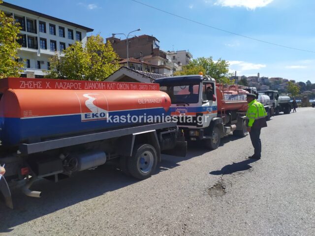 Στο συλλαλητήριο συμμετέχουν και οι πρατηριούχοι της Καστοριάς με τα βυτιοφόρα τους.