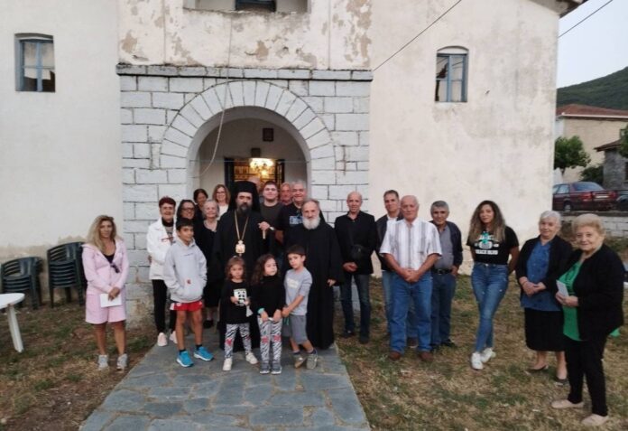 Ὁ Σεβασμιώτατος συνέψαλε τά κατανυκτικά καί παρηγορητικά τροπάρια πρός τήν Θεοτόκο, μίλησε, μοίρασε εὐλογίες καί συζήτησε μέ τούς Ἐνορίτες, οἱ ὁποῖοι τόν δέχθηκαν μέ πολλή ἀγάπη καί σεβασμό.