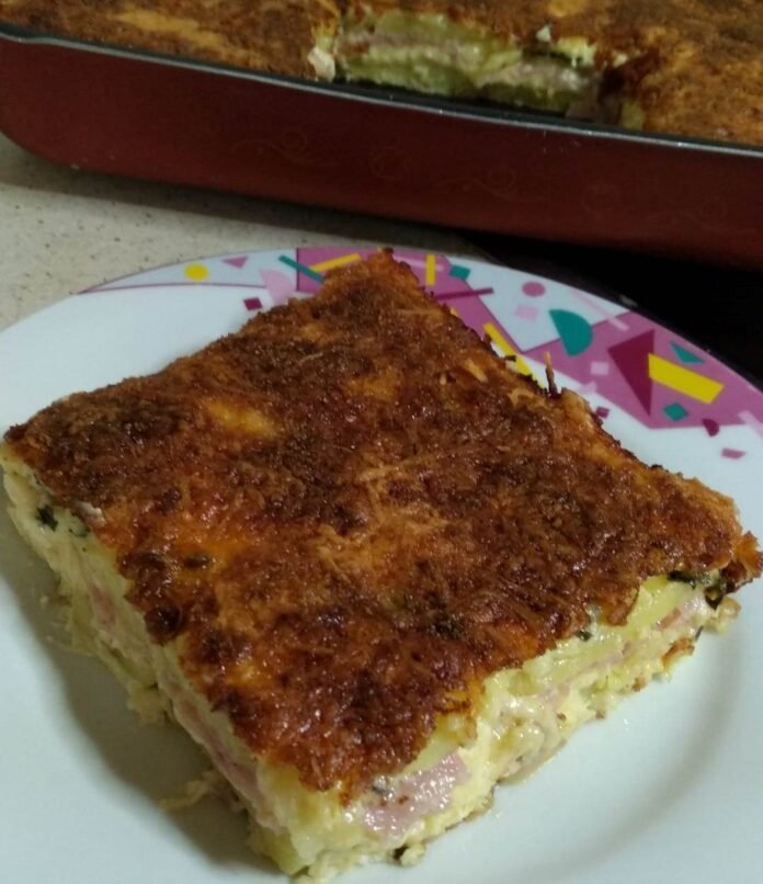 Αν θέλουμε ρίχνουμε λίγο μαϊντανό. Ρίχνουμε και το υπόλοιπο τυρί γκούντα. Χτυπάμε 2 αυγά σε ένα μπολ, ρίχνουμε και την κρέμα γάλακτος και τα χτυπάμε ξανά για λίγο. Απλώνουμε το μίγμα στο ταψί και πασπαλίζουμε λίγο φρυγανιά από πάνω. Το ψήνουμε στους 200 βαθμούς στις αντιστάσεις για 45-50 λεπτά.