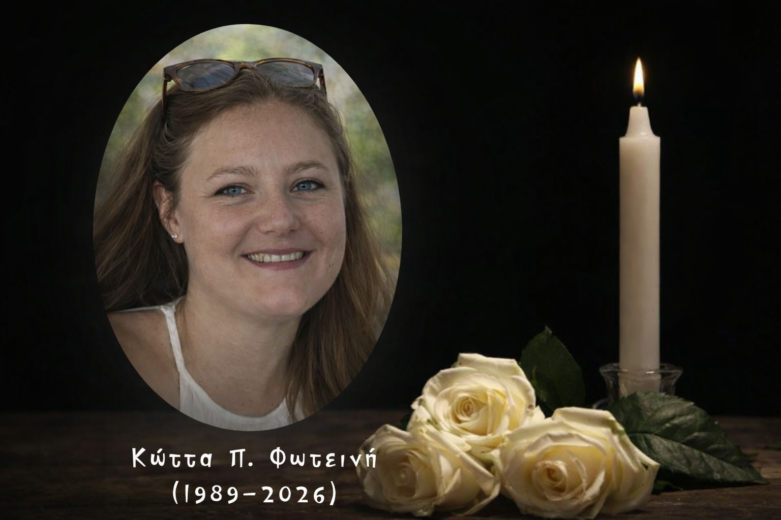 Με βαθιά οδύνη, άφατη θλίψη και μεγάλη συγκίνηση αποχαιρετούμε τη νεαρή συμπατριώτισσά μας Φωτεινή Π. Κώττα, που τόσο απρόσμενα έφυγε από κοντά μας την Τρίτη 10 Φεβρουαρίου.