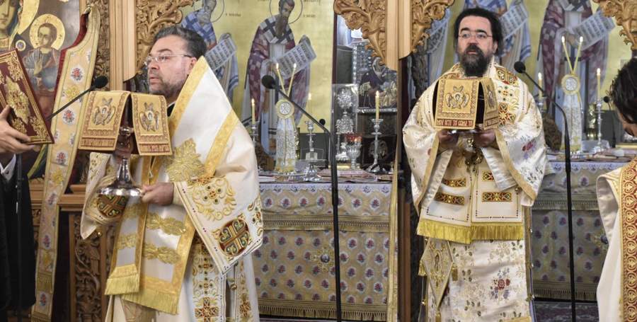 Τον Θεοφιλέστατο Ιεράρχη πλαισίωσαν ο εφημέριος του Ιερού Ναού π. Ελευθέριος Συτιλίδης και ο διάκονος π.Παντελεήμων.