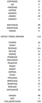 Η γεωγραφική κατανομή των κρουσμάτων έχει ως εξής: