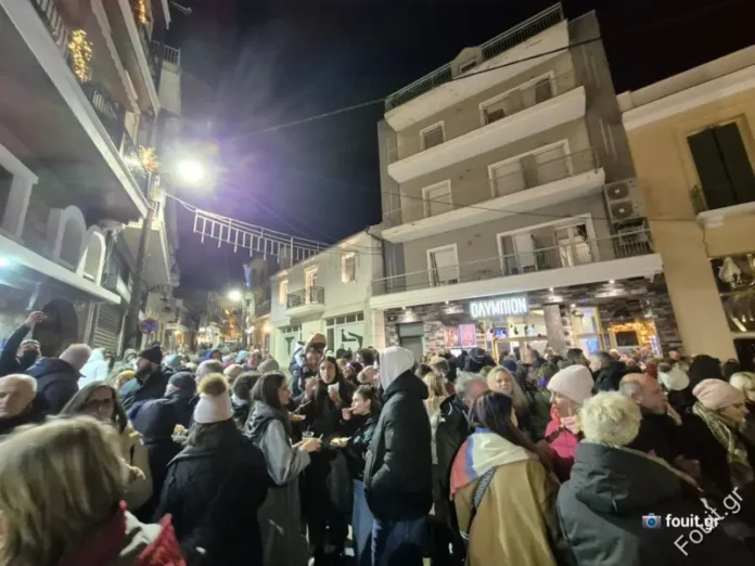 Το αδιαχώρητο αυτήν την ώρα στη Μητροπόλεως, στο ύψος του κινηματογράφου, στο καθιερωμένο πλέον ψήσιμο, από τα καταστήματα της περιοχής και γλέντι με τη Χαλκινομάνια