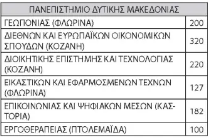 Φέτος οι εισακτέοι σε όλη την Ελλάδα συνολικά θα είναι 68.851. Σύμφωνα με την υπουργική απόφαση που δημοσιεύθηκε στην Εφημερίδα της Κυβερνήσεως φέτος οι εισακτέοι στο Πανεπιστήμιο Καστοριάς θα είναι 692 ενώ συνολικά σε όλη την Δυτική Μακεδονία 4091.