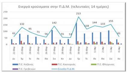 Η Περιφέρεια Δυτικής Μακεδονίας στα πλαίσια της ενημέρωσης για την εξέλιξη των κρουσμάτων κορωνοϊού, δίνει στη δημοσιότητα σχετικό πίνακα στον οποίο αποτυπώνεται ο αριθμός των ενεργών κρουσμάτων κατά Περιφερειακή Ενότητα.
