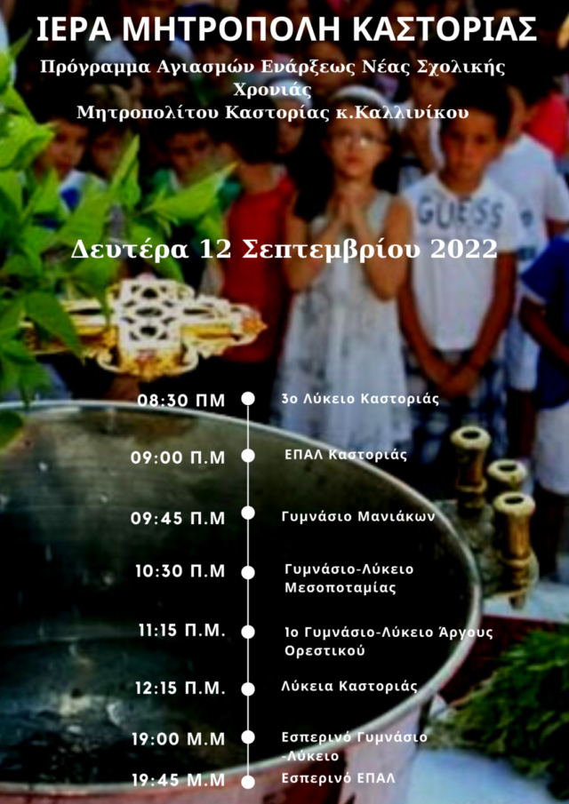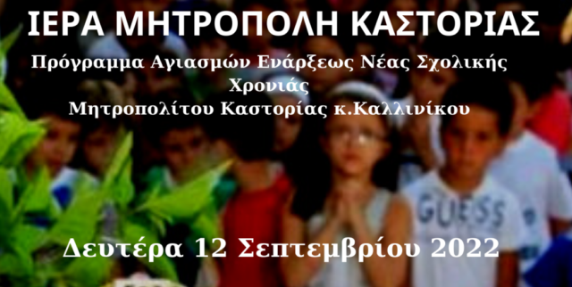 Πρόγραμμα Αγιασμών Eνάρξεως Νέας Σχολική Χρονιάς από τον Σεβ. Μητροπολίτη Καστορίας κ.Καλλίνικο