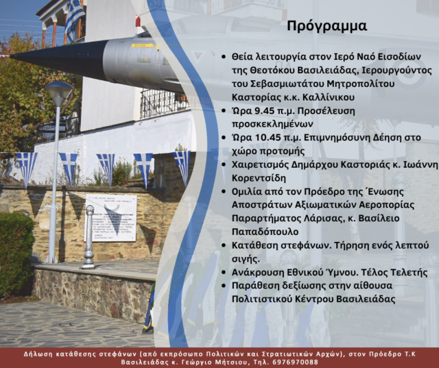 ΚαστοριάΕκδηλώσεις Πρόγραμμα και Πρόσκληση στις Εκδηλώσεις Τιμής για τον πρώτο πεσόντα Έλληνα Αξιωματικό του Έπους του ’40, Ευάγγελο Γιάνναρη 14 Νοεμβρίου 2023 FacebookTwitterPinterestWhatsApp Πρόγραμμα και Πρόσκληση στις Εκδηλώσεις Τιμής για τον πρώτο πεσόντα Έλληνα Αξιωματικό του Έπους του ’40, Ευάγγελο Γιάνναρη Κοινοποιήστε: Mοιραστείτε στο Facebook(Ανοίγει σε νέο παράθυρο) Facebook Share on X(Ανοίγει σε νέο παράθυρο) X