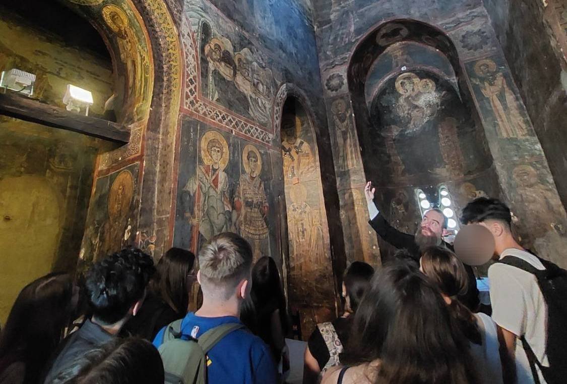 Τὴν περιήγηση στά μνημεῖα ἔκανε ὁ Ἀρχιμ. π. Στέφανος Σχοινᾶς, ὁ ὁποῖος πληροφόρησε τοὺς μαθητὲς γιὰ τὰ ἱστορικὰ στοιχεῖα τῶν Ναῶν καὶ τῆς περιοχῆς, τὴν σύνδεση τους μὲ ἱστορικὰ πρόσωπα τῆς πόλης, τὰ ἀρχιτεκτονικὰ μέρη καὶ τὴν χρήση τους καθὼς καὶ τὸν τοιχογραφικὸ διάκοσμο.