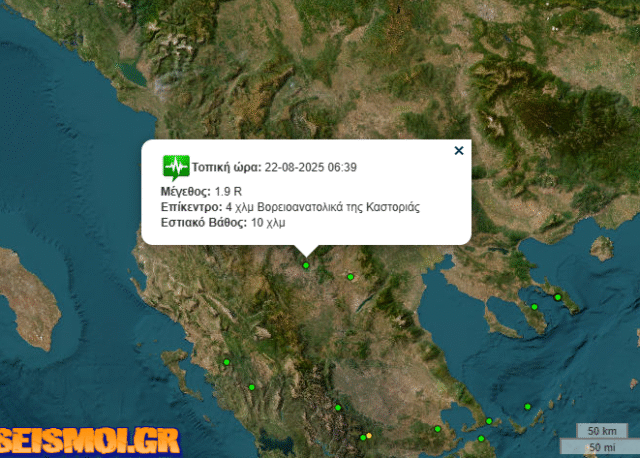 Σεισμική δόνηση 1,9 ρίχτερ σημειώθηκε το πρωί της Παρασκευής στην Καστοριά