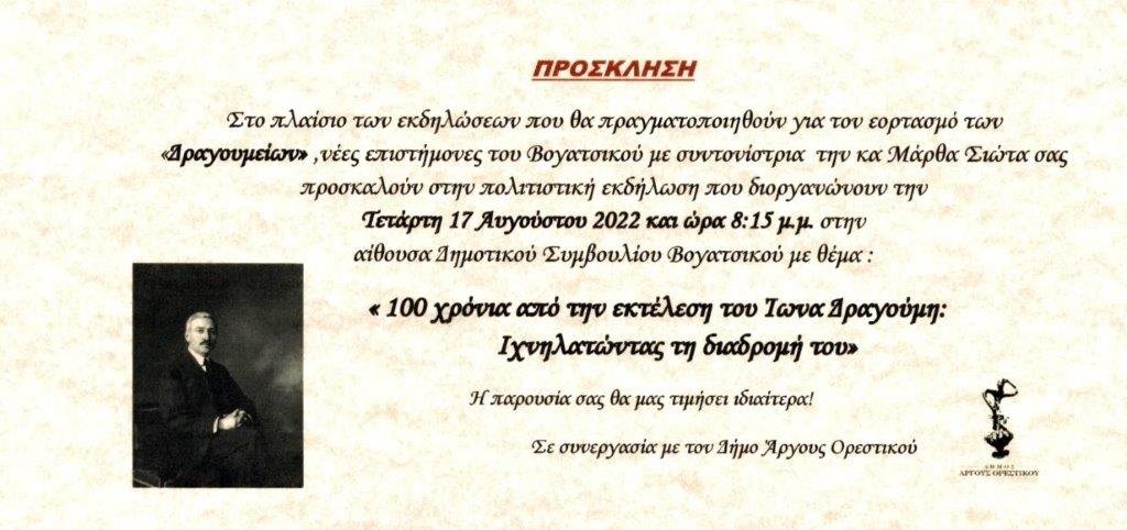 Πρόσκληση σε εκδήλωση: “100 χρόνια από την εκτέλεση του Ίωνα Δραγούμη: Ιχνηλατώντας τη διαδρομή του”