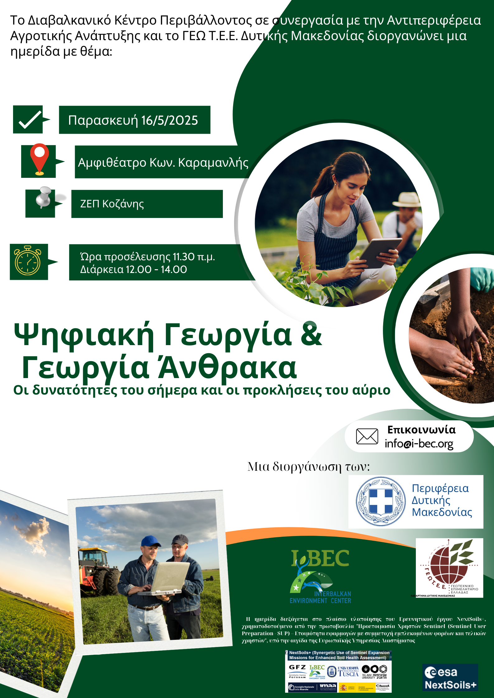 Γεωργία & Γεωργία Άνθρακα”, που θα πραγματοποιηθεί την Παρασκευή 16 Μαΐου 2025, και ώρα 12:00 – 14:00 μ.μ., στο αμφιθέατρο “Κωνσταντίνος Καραμανλής”, στο ισόγειο του κτιρίου στη ΖΕΠ Κοζάνης.