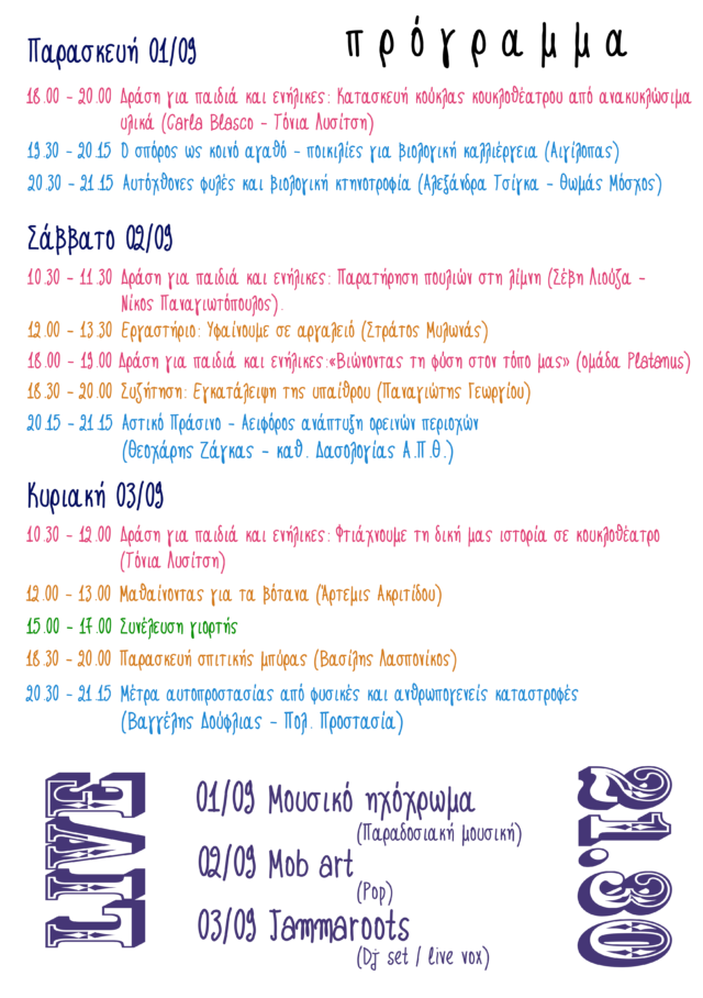 Η διοργάνωση γίνεται με τη στήριξη της Περιφερειακής Ενότητας Καστοριάς, του Δήμου Καστοριάς, της Εταιρίας Προστασίας Περιβάλλοντος Καστοριάς και του Αιγίλοπα – Δίκτυο για τη βιοποικιλότητα και την οικολογία στη γεωργία. Το ωράριο λειτουργίας της οικογιορτής είναι για την Παρασκευή 18.00 – 00.00, ενώ για Σάββατο και Κυριακή 10.00 – 00.00.