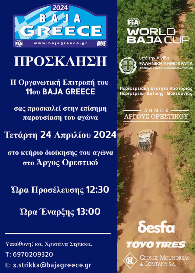 Την Τετάρτη 24 Απριλίου 2024 στις 13:00 στο Κτίριο Διοίκησης Αγώνα στο Αργος Ορεστικό θα πραγματοποιηθεί η επίσημη παρουσίαση του αγώνα.