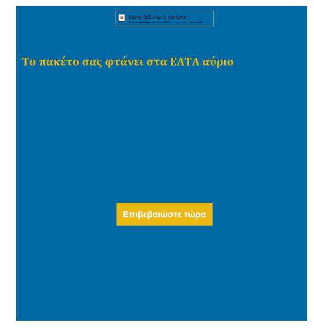Μέσω των εν λόγω μηνυμάτων, οι χρήστες καλούνται να επιβεβαιώσουν την παραλαβή του πακέτου τους που φτάνει στα ΕΛΤΑ την επόμενη μέρα.