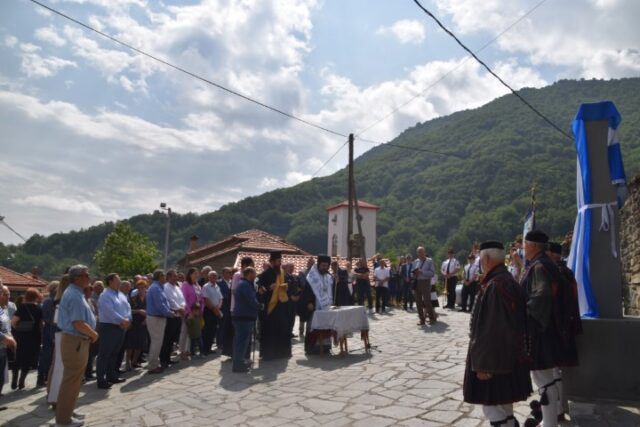 Μετά το πέρας της λειτουργίας οι παρευρισκόμενοι μετέβησαν στην πλατεία της βρύσης του χωριού όπου πραγματοποιήθηκε επιμνημόσυνη δέηση και στη συνέχεια τα αποκαλυπτήρια του Μνημείου από τον Μητροπολίτη Καστοριάς κ. Καλλίνικο και τον Δήμαρχο Άργους Ορεστικού, Παναγιώτη Κεπαπτσόγλου, όπως είχε γίνει και στο Μαρτυρικό Παλιό Κωσταράζι.