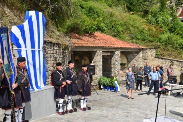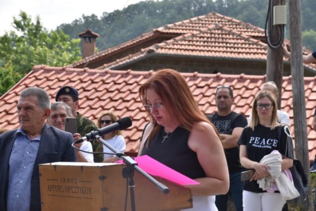Μετά τα αποκαλυπτήρια του μνημείου, πραγματοποιήθηκε ομιλία από το μέλος της Επιτροπής Μαρτυρικών Χωριών του Δήμου Άργους Ορεστικού, Μαρία Παπαϊωάννου, η οποία εξιστόρησε τα γεγονότα που οδήγησαν στο ολοκαύτωμα του χωριού και τη δολοφονία αθώων κατοίκων του, ενώ έκανε μια σύντομη περιγραφή του μνημείου και των συμβολισμών του.