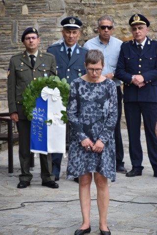 Της ομιλίας ακολούθησε κατάθεση στεφάνων από τους επισήμους, μεταξύ των οποίων και η Γενική Πρόξενος της Γερμανίας στη Θεσσαλονίκη, Σίβυλλα Μπέντικ. Ξεχωριστή στιγμή αποτέλεσε η στιγμή που στο βήμα ανέβηκε ο επιβιώσαντας Νικόλαος Τούλης, για να καταθέσει τις μνήμες που έχει κρατήσει από την ανείπωτη αυτή τραγωδία.