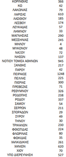 Η γεωγραφική κατανομή των κρουσμάτων έχει ως εξής: