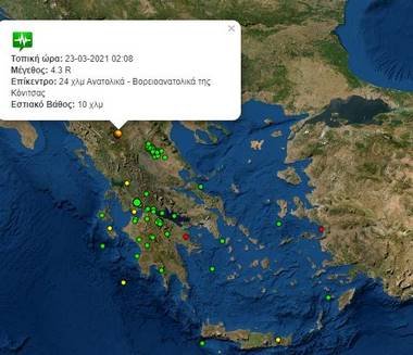 ΕλλάδαΕιδήσεις Σεισμός τα ξημερώματα στην Κόνιτσα – Αισθητός στην Καστοριά 23 Μαρτίου 2021 FacebookTwitterPinterestWhatsApp Ισχυρή σεισμική δόνηση μεγέθους 4,3 ρίχτερ σημειώθηκε στις 2:08 τα ξημερώματα στην Κόνιτσα. Ο σεισμός είχε επίκεντρο 24 χλμ Ανατολικά – Βορειοανατολικά της Κόνιτσας και είχε εστιακό βάθος 10 χλμ. Ενώ έγινε ιδιαίτερα αισθητός και στην Καστοριά Κοινοποιήστε: Mοιραστείτε στο Facebook(Ανοίγει σε νέο παράθυρο) Facebook Share on X(Ανοίγει σε νέο παράθυρο) X