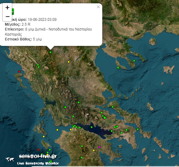 Καστοριά Σεισμός την νύχτα της Δευτέρας στην Καστοριά 19 Ιουνίου 2023 FacebookTwitterPinterestWhatsApp Σεισμική δόνηση μεγάθους 2,5 ρίχτερ σημειώθηκε στις 03:09 τα ξημερώματα της Δευτέρας στην Καστοριά. Το επίκεντρο ήταν 8 χλμ Δυτικά – Νοτιοδυτικά του Νεστορίου στην περιοχή Πεύκου, και το εστιακό βάθος ήταν 5χλμ Κοινοποιήστε: Mοιραστείτε στο Facebook(Ανοίγει σε νέο παράθυρο) Facebook Share on X(Ανοίγει σε νέο παράθυρο) X