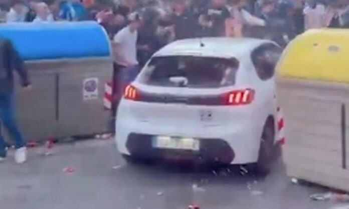 Όπως φαίνεται στις εικόνες, ο οδηγός του λευκού αυτοκινήτου περιβάλλεται από αρκετές εκατοντάδες οπαδούς πάτησε γκάζι για να ξεφύγει. Τα ισπανικά ΜΜΕ αναφέρουν πως έχει συλληφθεί.
