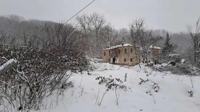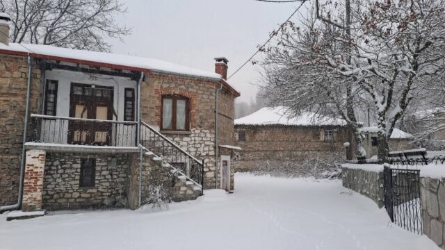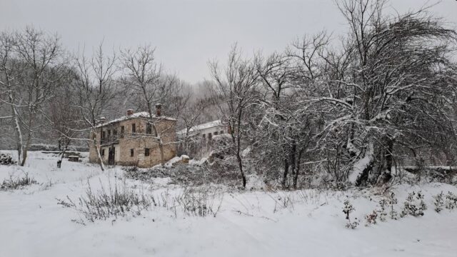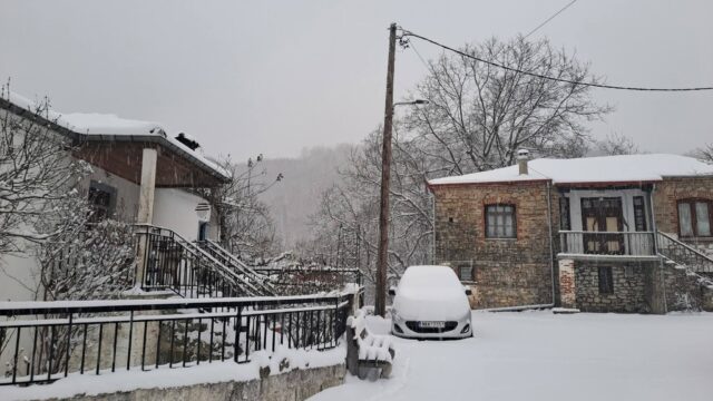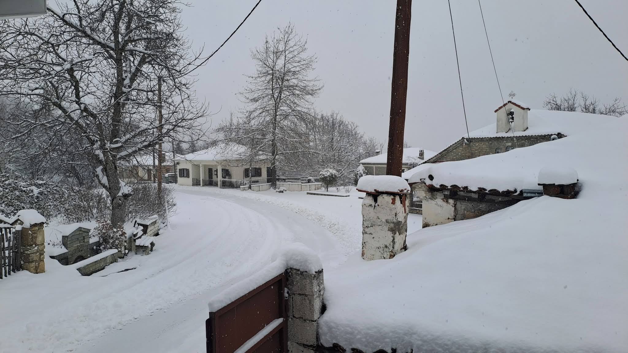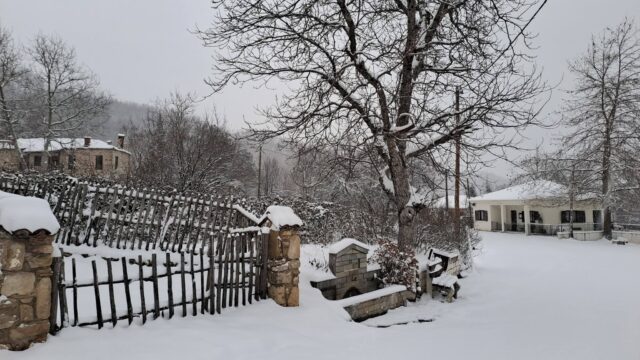 Τα πέτρινα σπίτια και οι αυλές έχουν καλυφθεί από ένα παχύ στρώμα χιονιού, ενώ τα δέντρα στις γύρω πλαγιές λυγίζουν από το βάρος του «λευκού επισκέπτη». Παρά τις χαμηλές θερμοκρασίες, η εικόνα του χωριού είναι μοναδική, θυμίζοντας παραδοσιακή καρτ ποστάλ από την ορεινή Καστοριά.