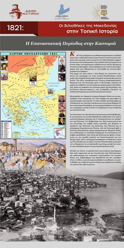 H Δημοτική βιβλιοθήκη Καστοριάς συμμετέχει στην Έκθεση επιλέγοντας, μέσω δύο μπάνερ, να αναδείξει δύο θέματα: « Η επαναστατική περίοδος στην Καστοριά» και «Προεπαναστατικοί Φιλικοί από την Καστοριά».