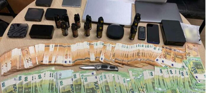 Από τις έρευνες που πραγματοποιήθηκαν κατά την επιχείρηση σε κατοικίες και καταστήματα, βρέθηκαν και κατασχέθηκαν: 52.915 ευρώ, 24 συσκευές κινητής τηλεφωνίας, 5 φορητές συσκευές tablet, 3 φορητά ψηφιακά μέσα ψηφιακής αποθήκευσης (usb flash drive), 22 σκληροί δίσκοι Η/Υ, 46 τραπεζικές κάρτες (χρεωστικές-πιστωτικές/ανάληψης), 11 ηλεκτρονικοί υπολογιστές, αναδιπλούμενο μαχαίρι συνολικού μήκους 20 εκατοστών και μήκος λάμας 8 εκατοστών, 3 τραπεζικά βιβλιάρια καταθέσεων, 6 κάρτες SIM, κάρτα microsd, 41 διαδικτυακοί δέκτες, ασύρματος δρομολογητής, 14 σπρέι πιπεριού, πλαστό δελτίο αστυνομικής ταυτότητας, πλήθος εγγράφων, πελατολογίων και ιδιόχειρων σημειώσεων.
