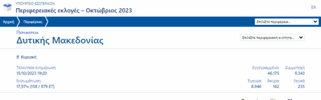 Συγκεντρωτικά Περιφέρειας Δυτικής Μακεδονίας 17,97%