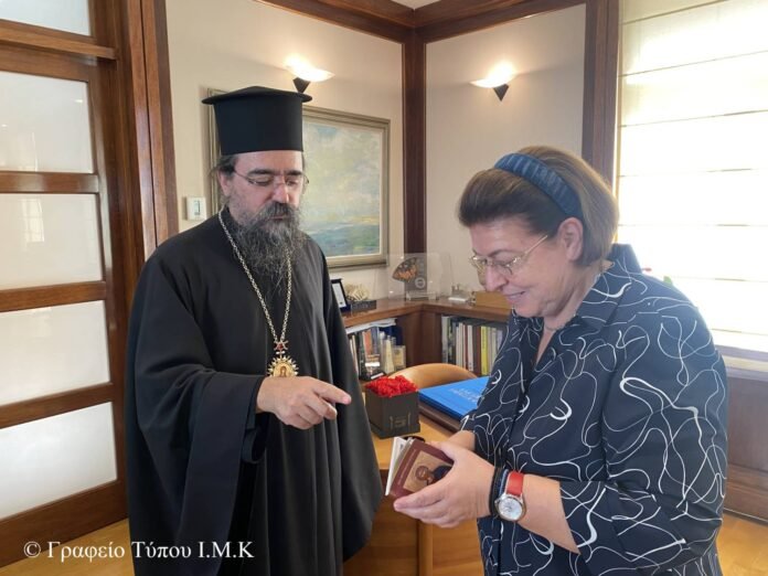 Ὁ Σεβασμιώτατος συζήτησε μαζί τους θέματα τὰ ὁποῖα ἀφοροῦν τὴν ἐπαρχία μας καί εἰδικότερα τὸ κοινωνικὸ ἔργο τῆς Ἱερᾶς Μητροπόλεως, τά ἐκκλησιαστικά μνημεῖα, τίς προσκυνηματικές περιηγήσεις κ.ἄ.