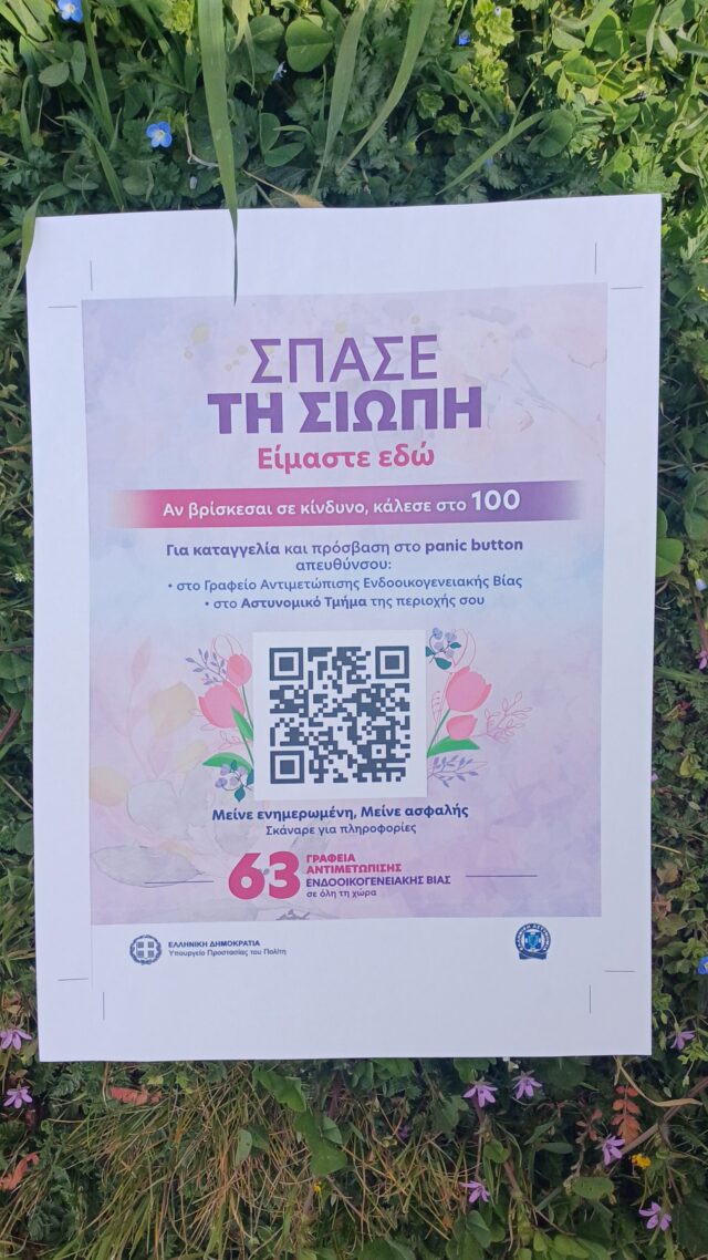 Υπενθυμίζεται στους πολίτες ότι μπορούν να επικοινωνούν για την άμεση προστασία τους με την Άμεση Δράση (100) ή με τα κατά τόπους Γραφεία Αντιμετώπισης Ενδοοικογενειακής Βίας.