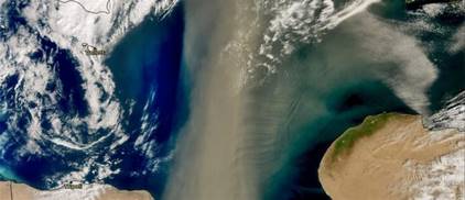 Μια φωτογραφία από το πρόγραμμα γεωσκόπησης Κοπέρνικος της Ευρωπαϊκής Ένωσης αποτυπώνει μια εντυπωσιακή συνθήκη που έχει δημιουργηθεί στην ατμόσφαιρα με ένα σύννεφο σκόνης – μήκους 800 χιλιομέτρων – από τη Σαχάρα που κατευθύνεται στη χώρα μας και στα Βαλκάνια.