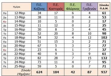 Π.E. Καστοριάς. Ενεργά κρούσματα (1) Π.E. Κοζάνης. Ενεργά κρούσματα (1) Π.E. Γρεβενά. Ενεργά κρούσματα (1) Π.E. Φλώρινας. Ενεργά κρούσματα (1)